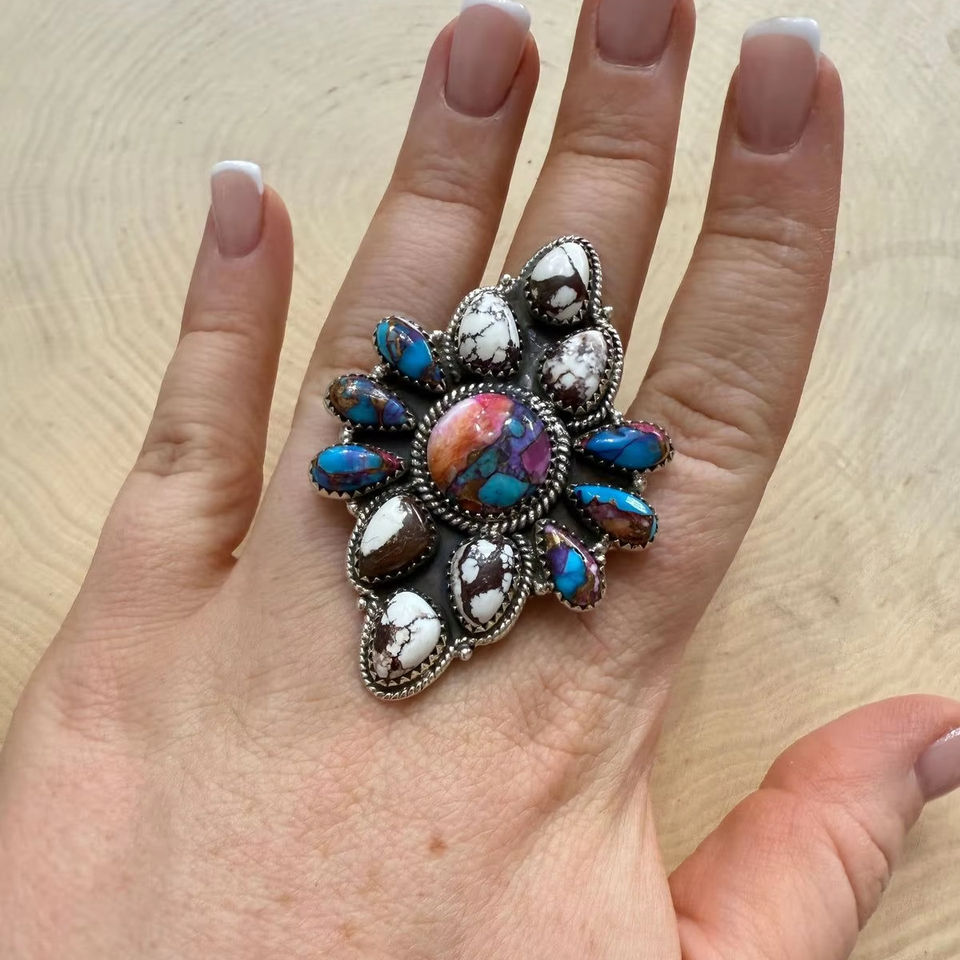 Handmade Wild Horse and Pink Dream Mojave Adjustable Ring Sterling Silver