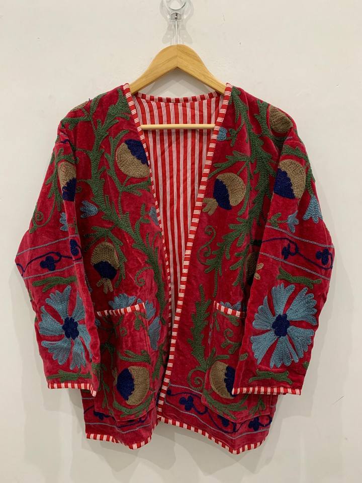 Handmade Winter Wear Women Night Kimono Suzani Embroidery Jacket Bridesmaid Sexy Suzani Jacket Tunic Party Wear