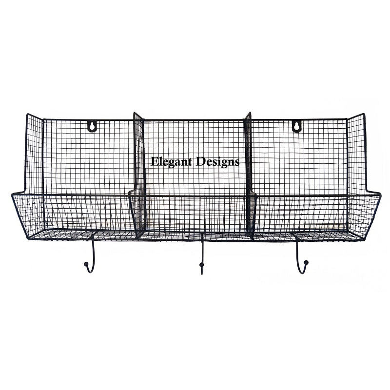 Handmade Wire Basket Square Shape Metal Wall Basket Black Power Coated Vintage Iron Hanging Basket Set Best Storage Wholesale