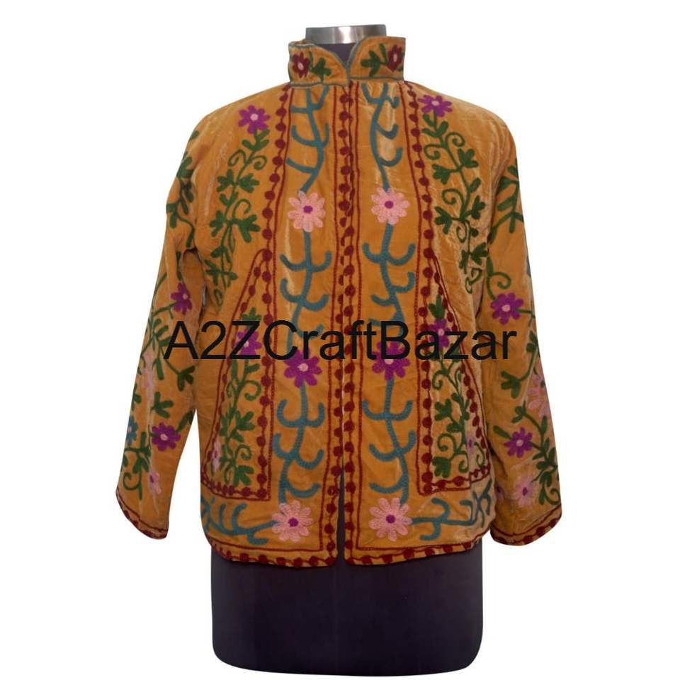 Handmade Women Suzani Embroidered Woven Velvet Cotton Jacket Boho Winter Coat Floral Ethnic Outerwear for Women and Girls