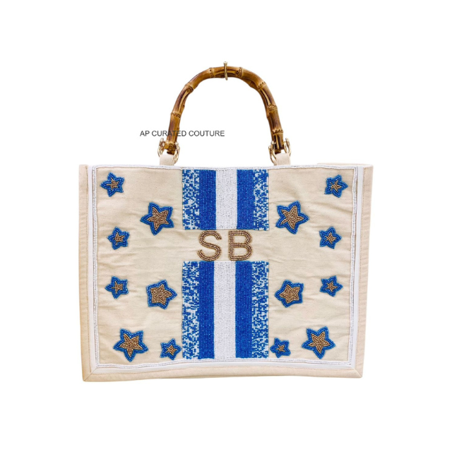 Handmade Women's Beaded Tote Bag for Mardi Gras Event | Customizable Designer Beaded Hand Bag From India