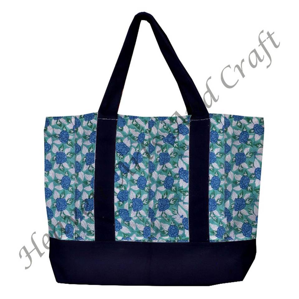 Handmade Women's Black Handle Block Printed Cotton Shoulder Bag Indian Style Custom Logo Autumn Bag
