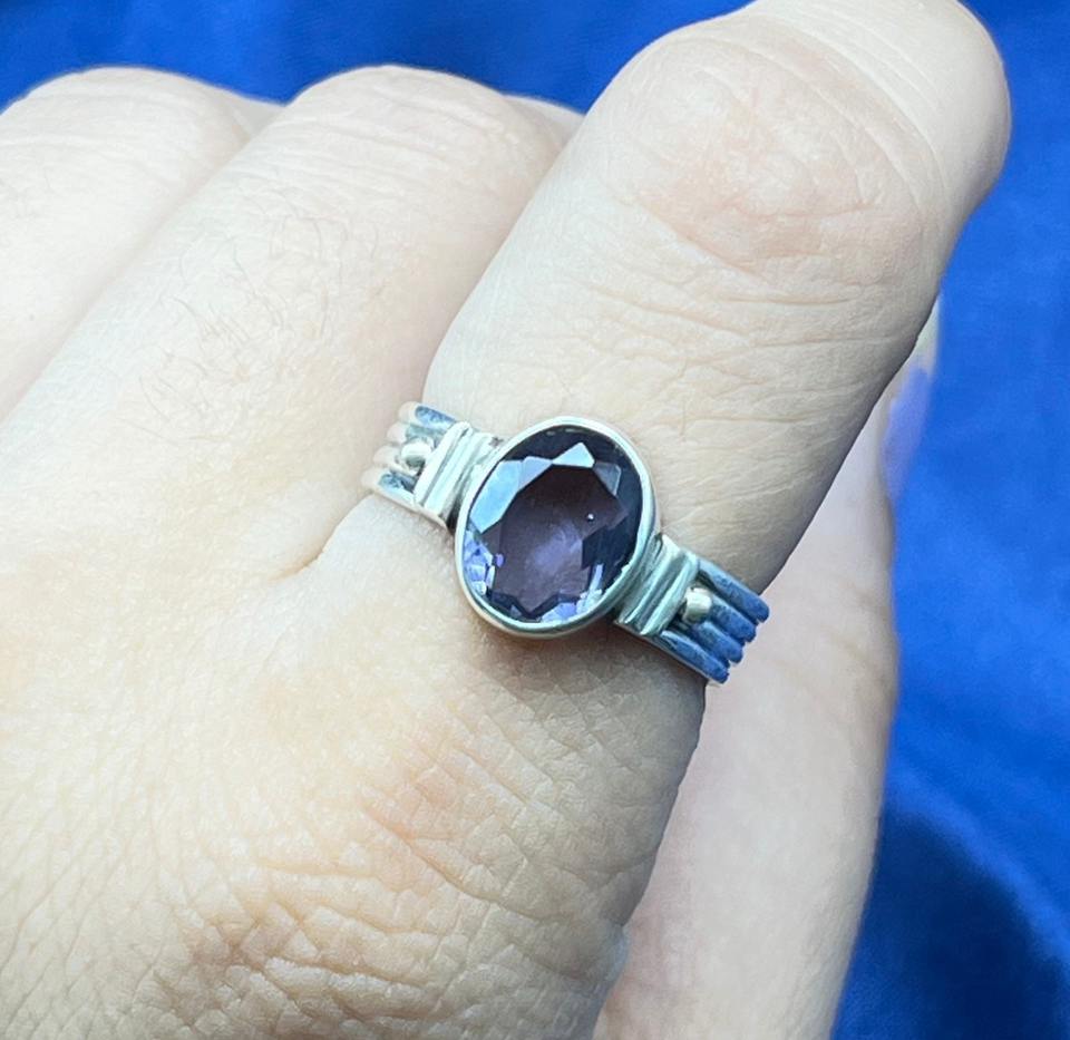 Handmade Women's Bohemian Ring Silver Plated Natural Amethyst Gemstone Diamond Embellishment Bezel Setting for Weddings