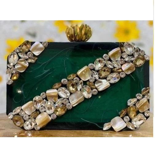 Handmade Women's Floral Epoxy Handbag Resin Clutch Stone Work Folk Art Style for Evening Parties Bridal Events Gifts with Chain