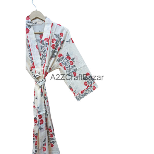 Handmade Women's Indian Cotton Kimono Multi-Color Floral Print Bath Overcoat V-Neck Collar Elastic Waist for Spring Beach Lounge
