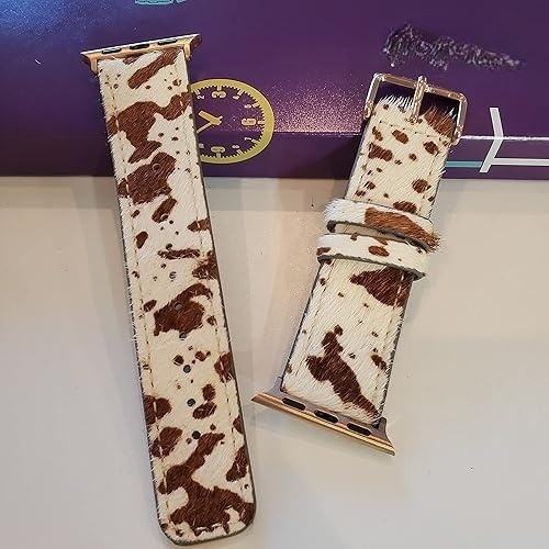 Handmade Women's Leather Watch Band with Hair on Hide Finish Stainless Steel Buckle Gift for Mom