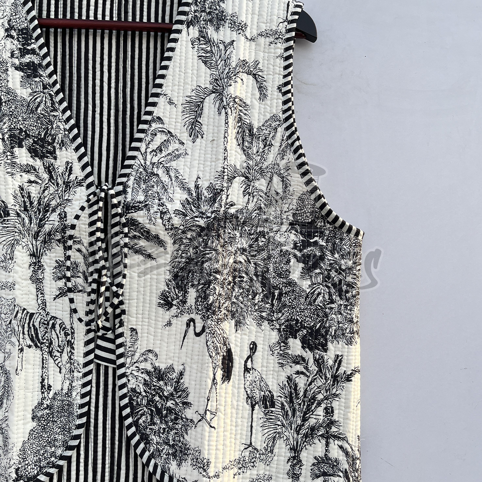 Handmade Women's Sleeveless Floral Knitted Bomber Vest Front Open Waistcoat Sustainable Cotton Filling Hand Block Printed Short