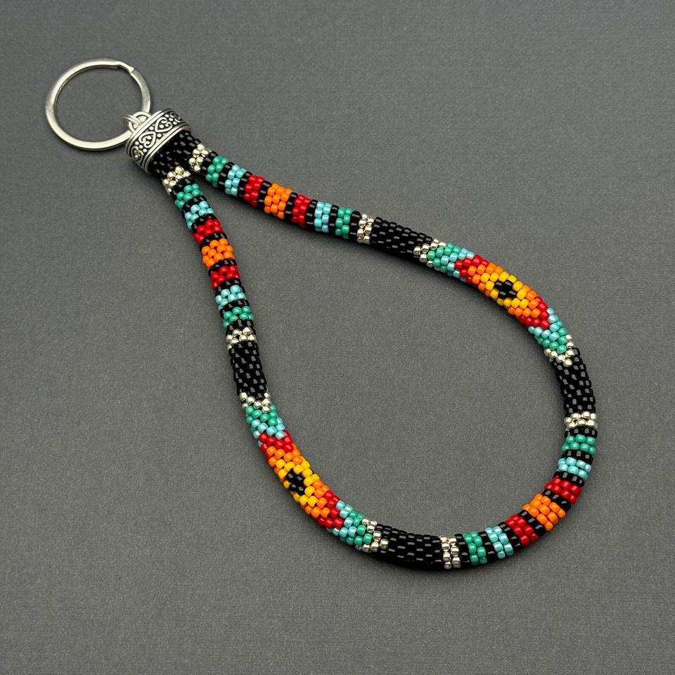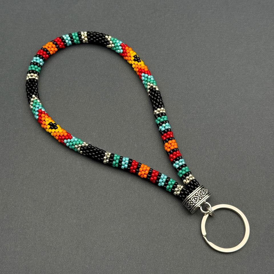 Handmade Women's Trendy Beaded Wrist Keychain Lanyard with Colorful Geometric Pattern Durable Metal Ring Holder for Everyday Use