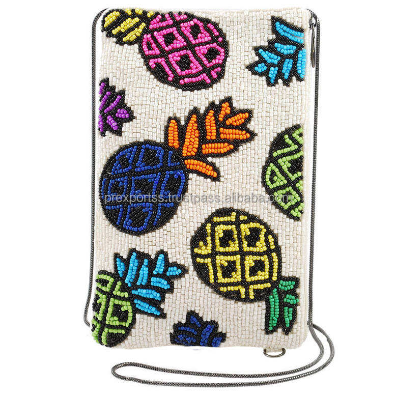 Handmade Women's Vintage Beaded Mobile Pouch Love Beach Summer Vacation Clutch Seaside Purse Crossbody Phone Sling Bag Hook Type