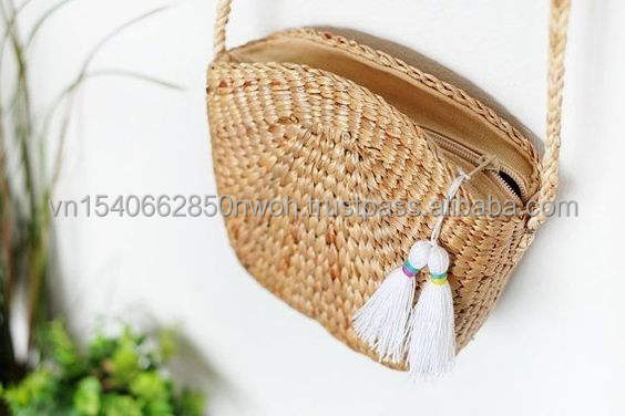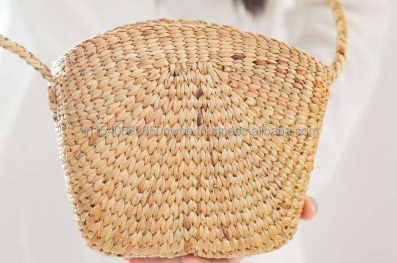 Handmade Women's Water Hyacinth Leather Crossbody Bag Floral Beading Button Closure Summer Holiday Logo Pattern Tote Handbags