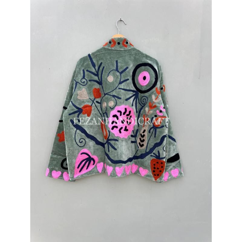 Handmade Women's Winter Jacket with Velvet and Embroidery Unisex Hippie Style Coat with Knitted Inside Lining