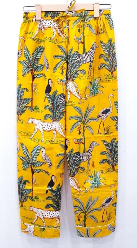 Handmade Women's Yellow Satin Cotton Pajama Set Animal Print Night Dress with Shorts and Shirt Comfortable Pantsuit