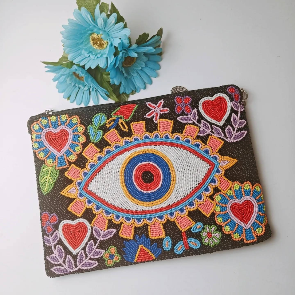 Womens Trendy Beaded Embroidered Messenger Clutch Handbag