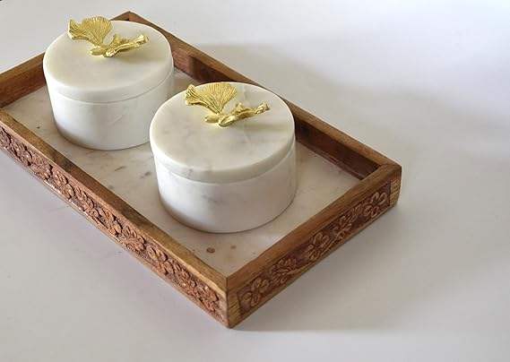 Handmade Wood Marble Serving Tray For Home Decor Luxury Wood Marble Serving Tray For Serving And Display By HAND MADE CRAFT