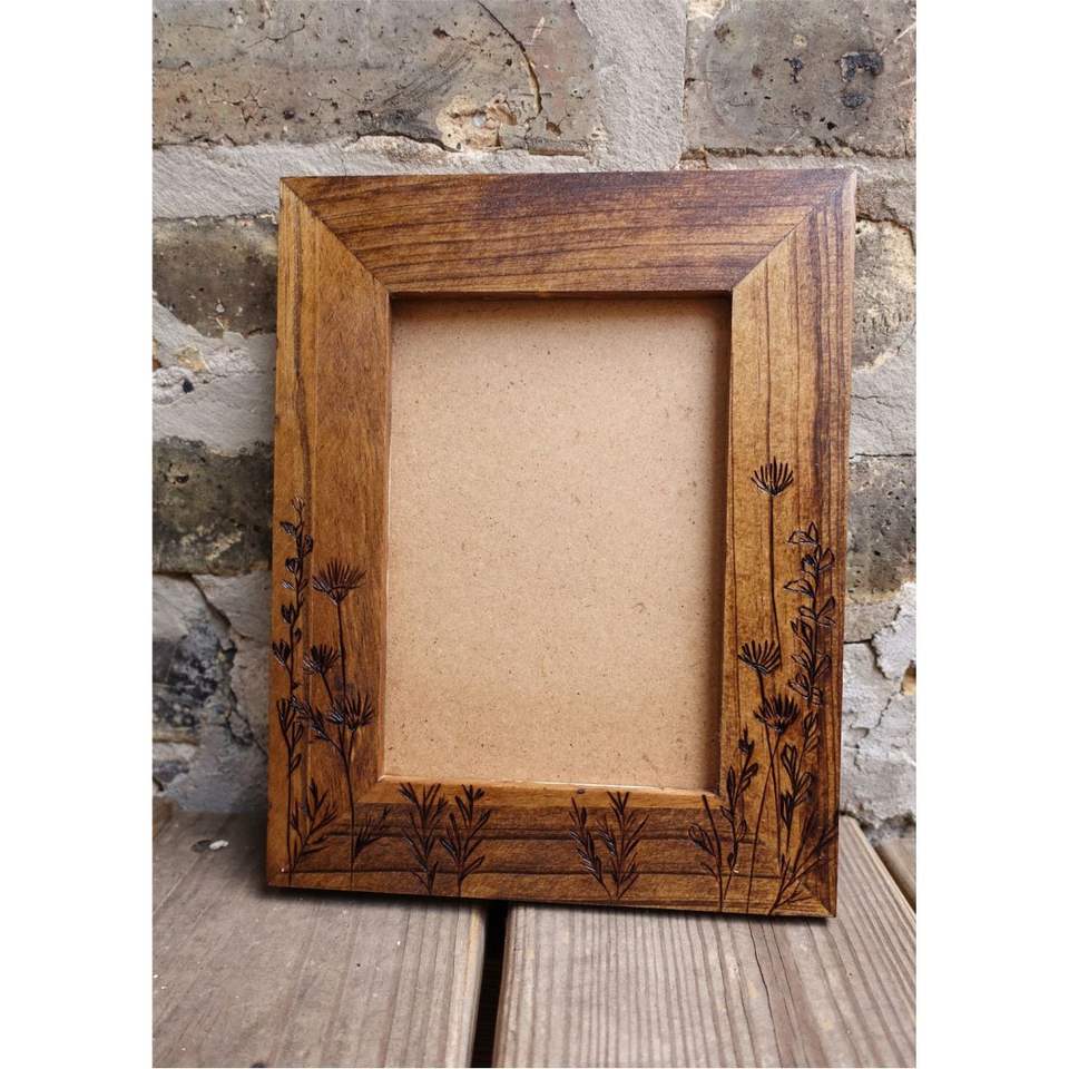 Handmade Wood Photo Frame Rustic Floral Pyrography Picture Frame Desktop Home Decor Custom Wooden Photo Frame 4x6 5x7 Bulk