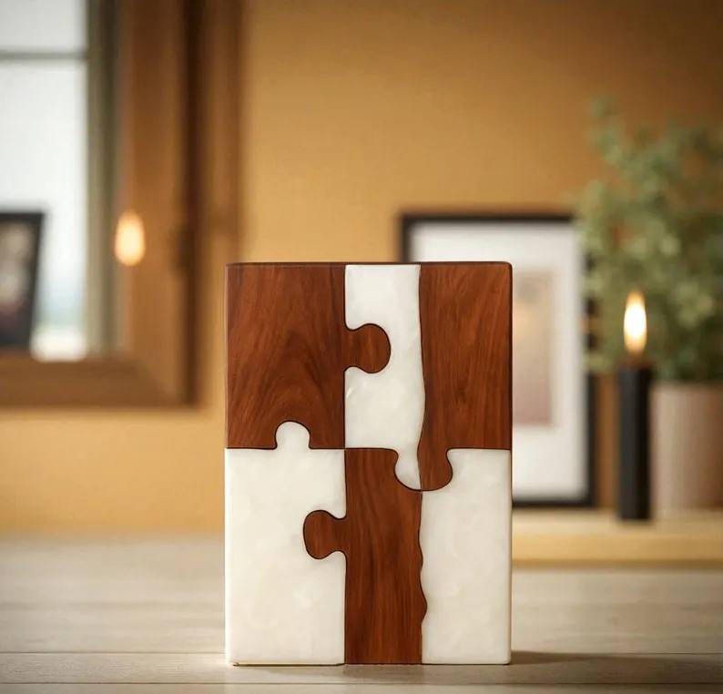 Handmade Wood & Resin Puzzle Cremation Urn: Unique Memorial Keepsake for human ashes medume size 9x5.5 inches urn box