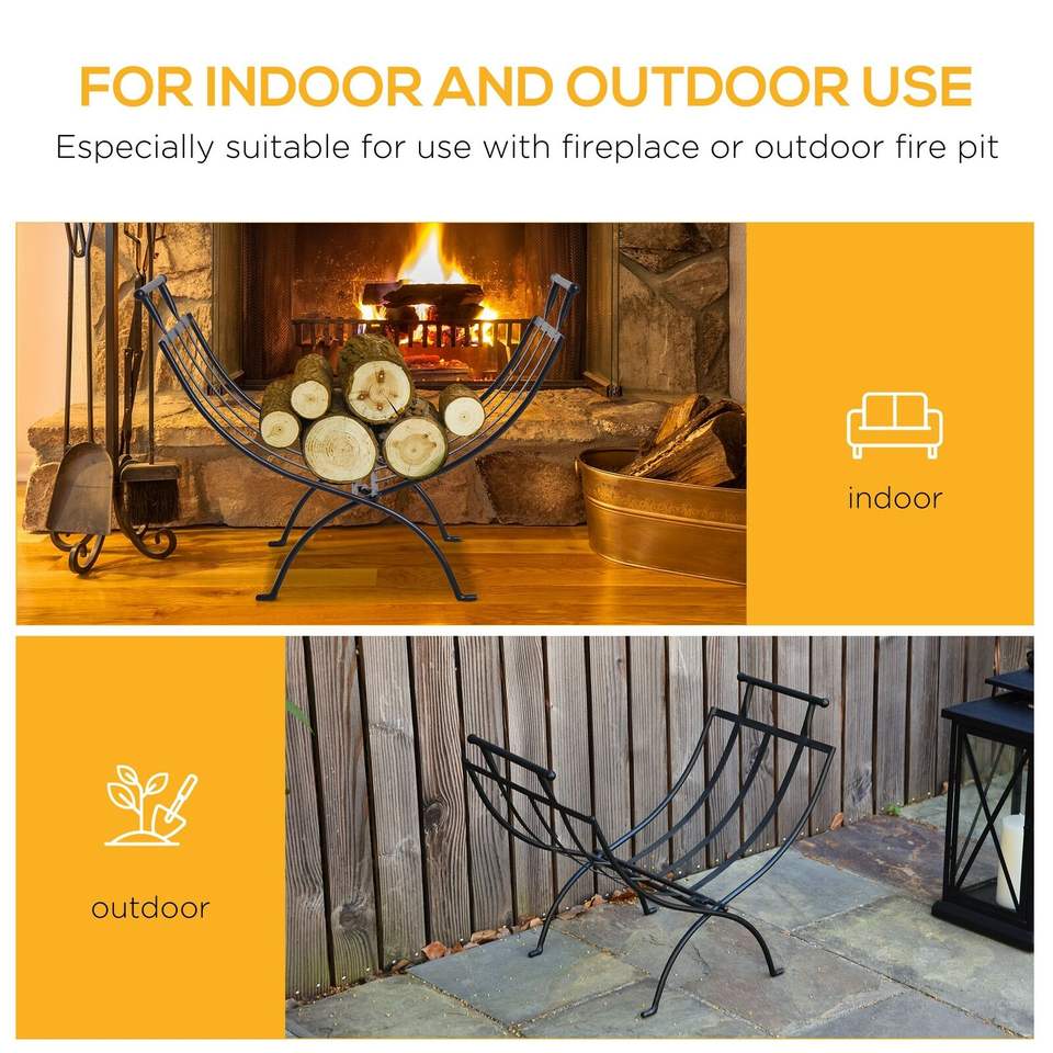Handmade Wood Storage Rack in Metal with Black Powder Coated Finished Perfect for Indoor and Outdoor Log Holder Use