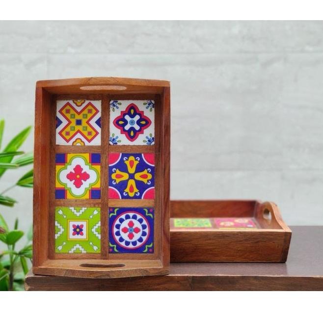 Handmade Wooden Art Deco Tray for Snacks Drinks Tea Coffee Serving Home Hotel Restaurant Dining Table Decor Wedding Diwali