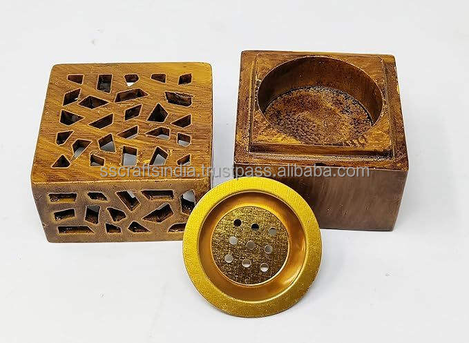 Handmade Wooden Bakhoor Burner with Lid for Religious Use for Arabic Oud Frankincense Spiritual Meditation at Home From India
