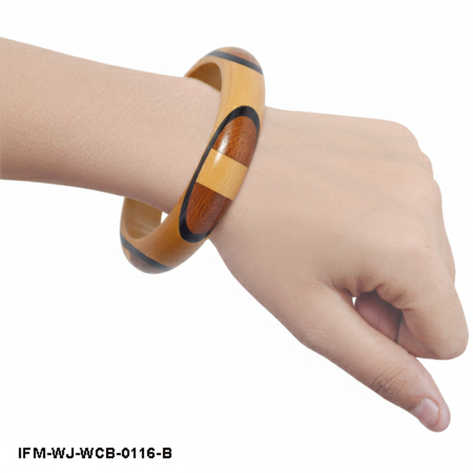 Handmade Wooden Bangle Bracelet Handcrafted Natural Multi Tone Wood Inlay Curved Chunky Statement Wristband Jewelry for Women