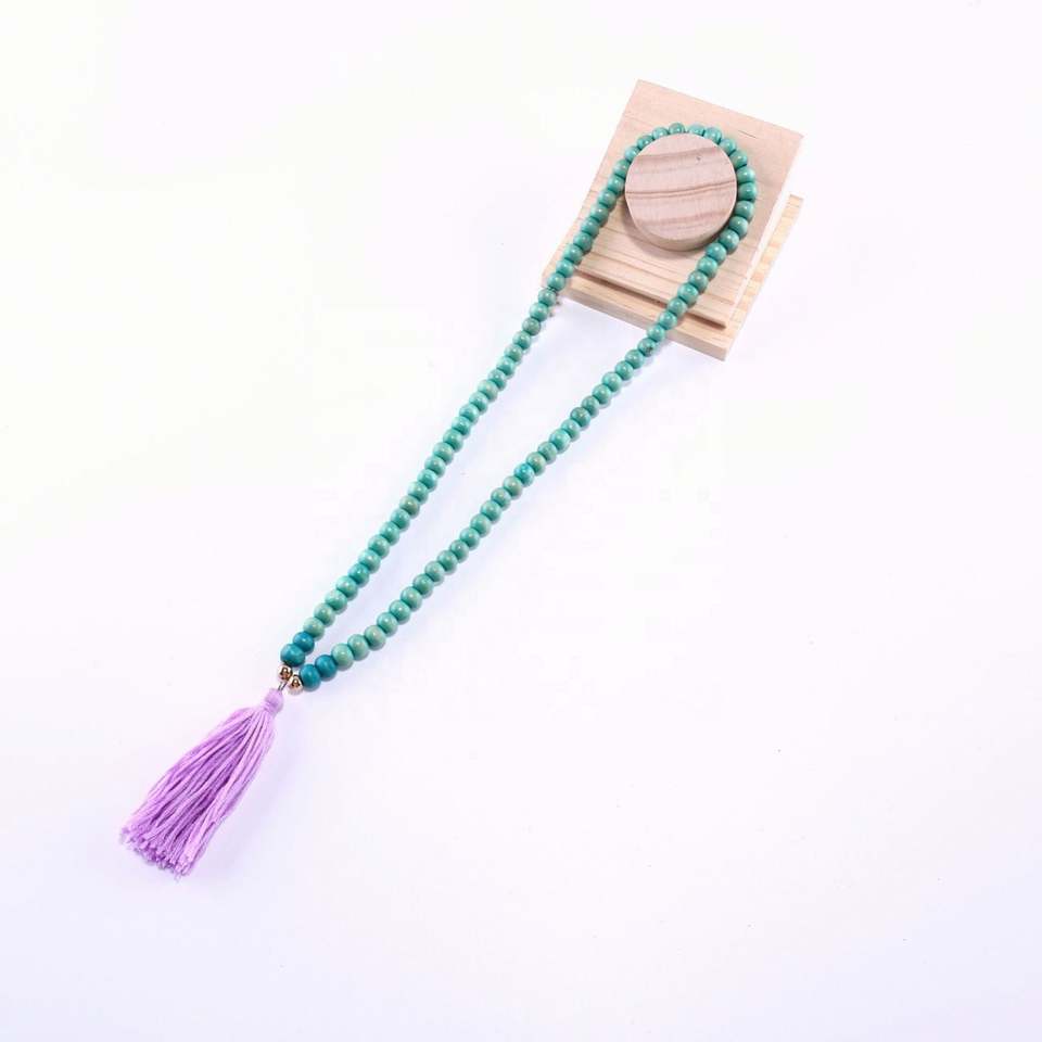 Handmade Wooden Beaded Tassel Stretch Wrap Bracelet and Necklace Jewelry Set Fashion Women Girl Jewelry