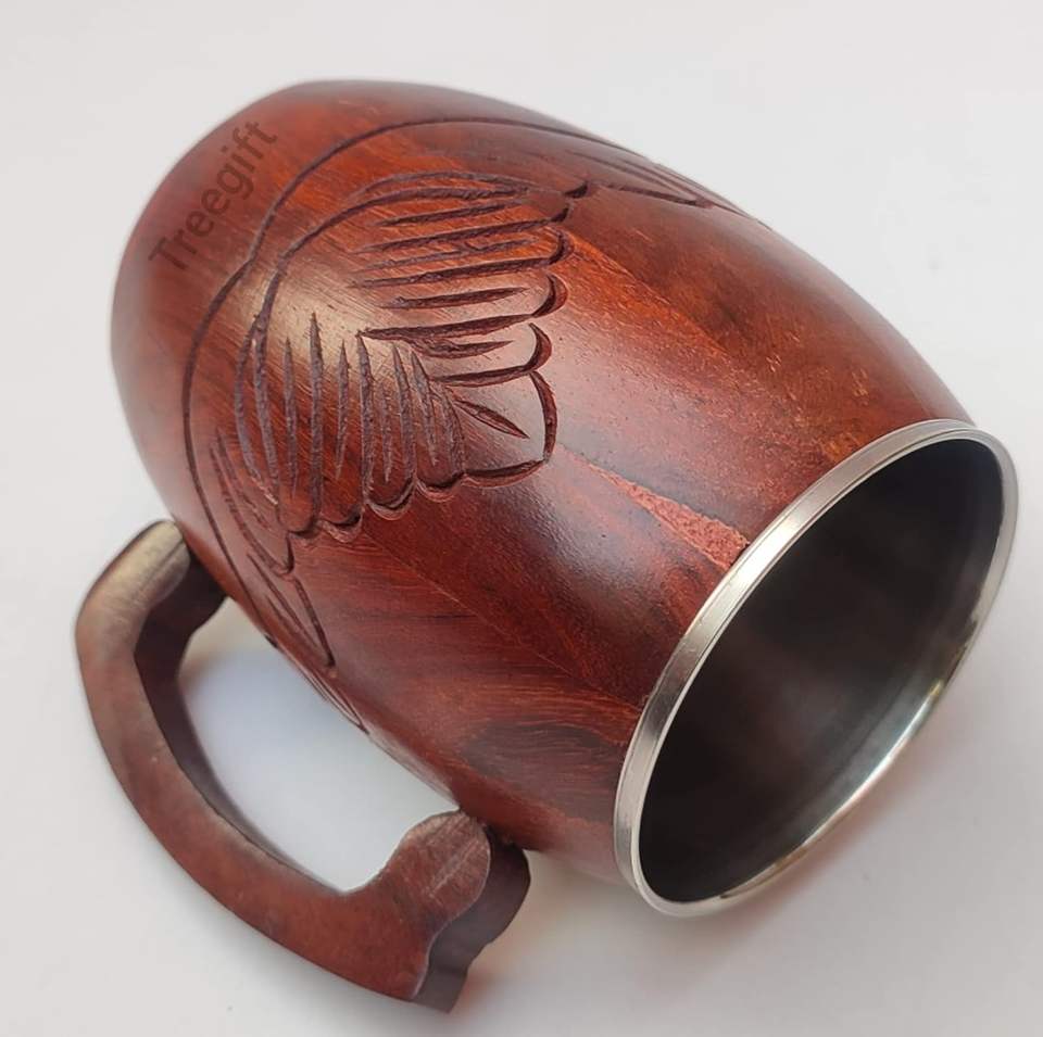 Handmade Wooden Beer Mug Wood Stainless Steel Cup Gift Natural Wood Retro Beige Metal Flask Beer Barrel Mug