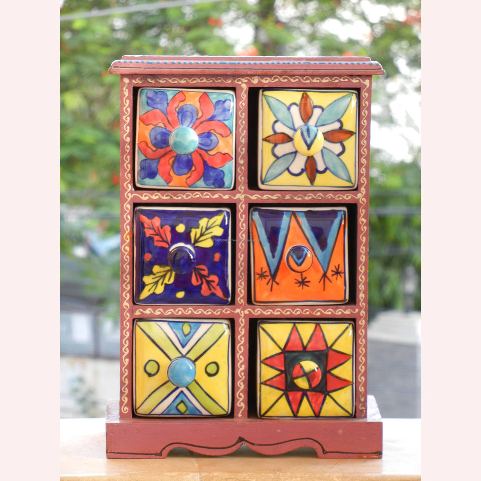 Handmade Wooden Ceramic Decorative Storage Drawer Versatile Jewelry Box Organizer for Wardrobe Living Room Spice Storage