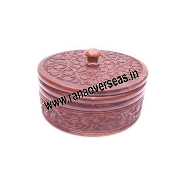 Handmade Wooden Chapati Box With Lid Knob and Hand Carved Design for Home Hotel Restaurant