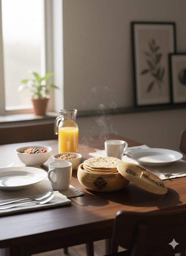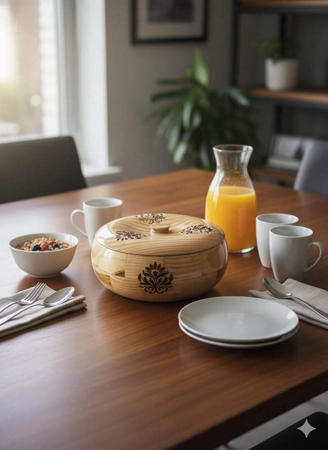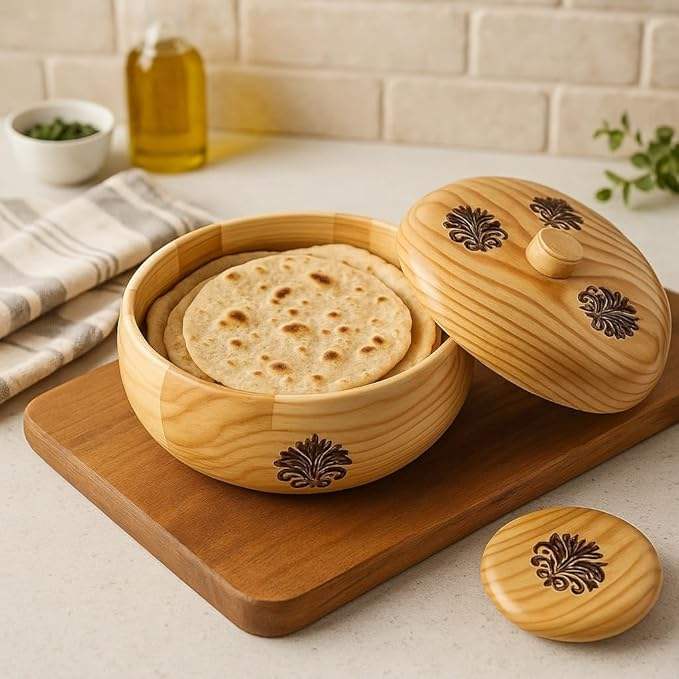 Handmade Wooden Chapati Storage Box with Lid for Hygienic Food Keeping Large Wooden Roti Box for Family Meals By AALIYAN IMPEX
