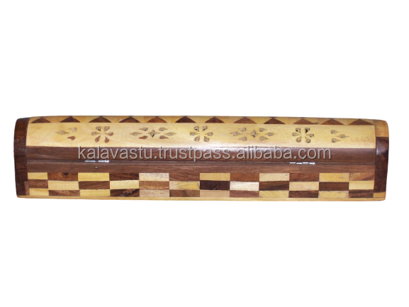 Handmade Wooden Coffin Box Incense Burner with Agarbatti Stand Cone Holder for Aromatic Use