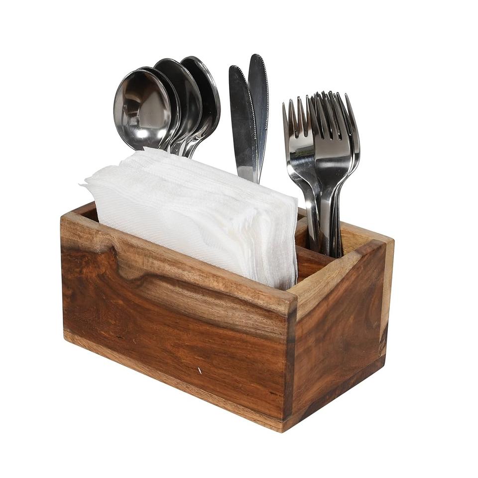 Handmade Wooden Cutlery Holder for Home Dining Table Use Wood Cutlery Box Good Finishing Customized Size Round Shape