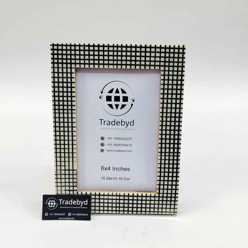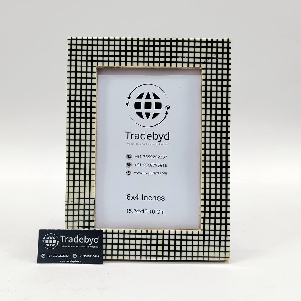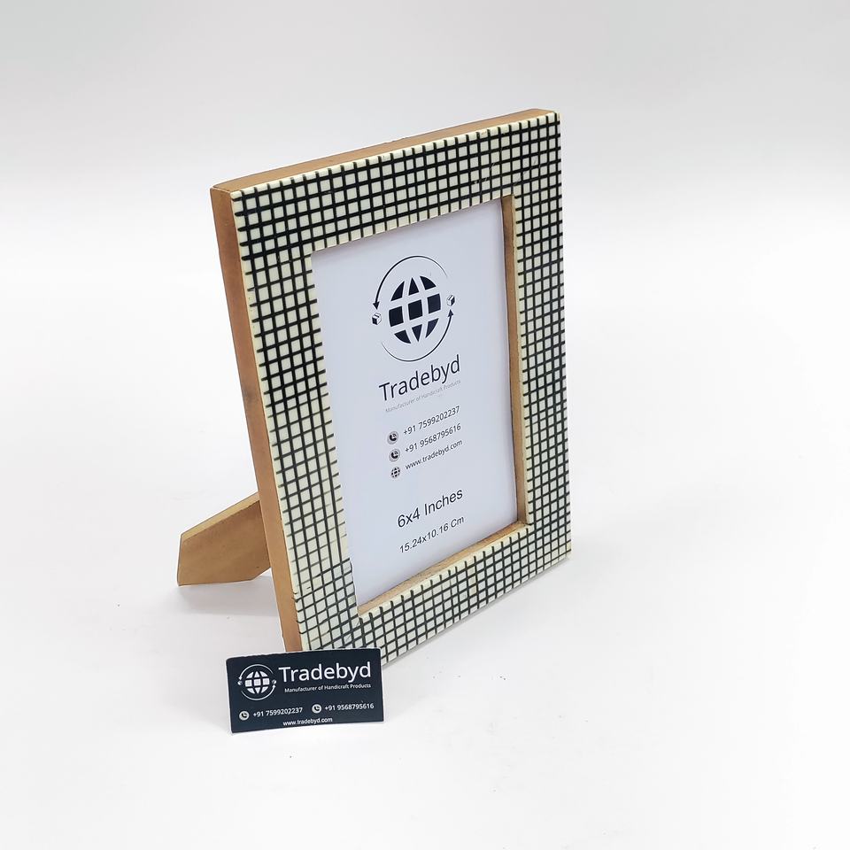 Handmade Wooden Photo Frame with Horn and Bone Inlay Square Shape Indian Handicraft Frame for Luxury Decor by Tradebyd