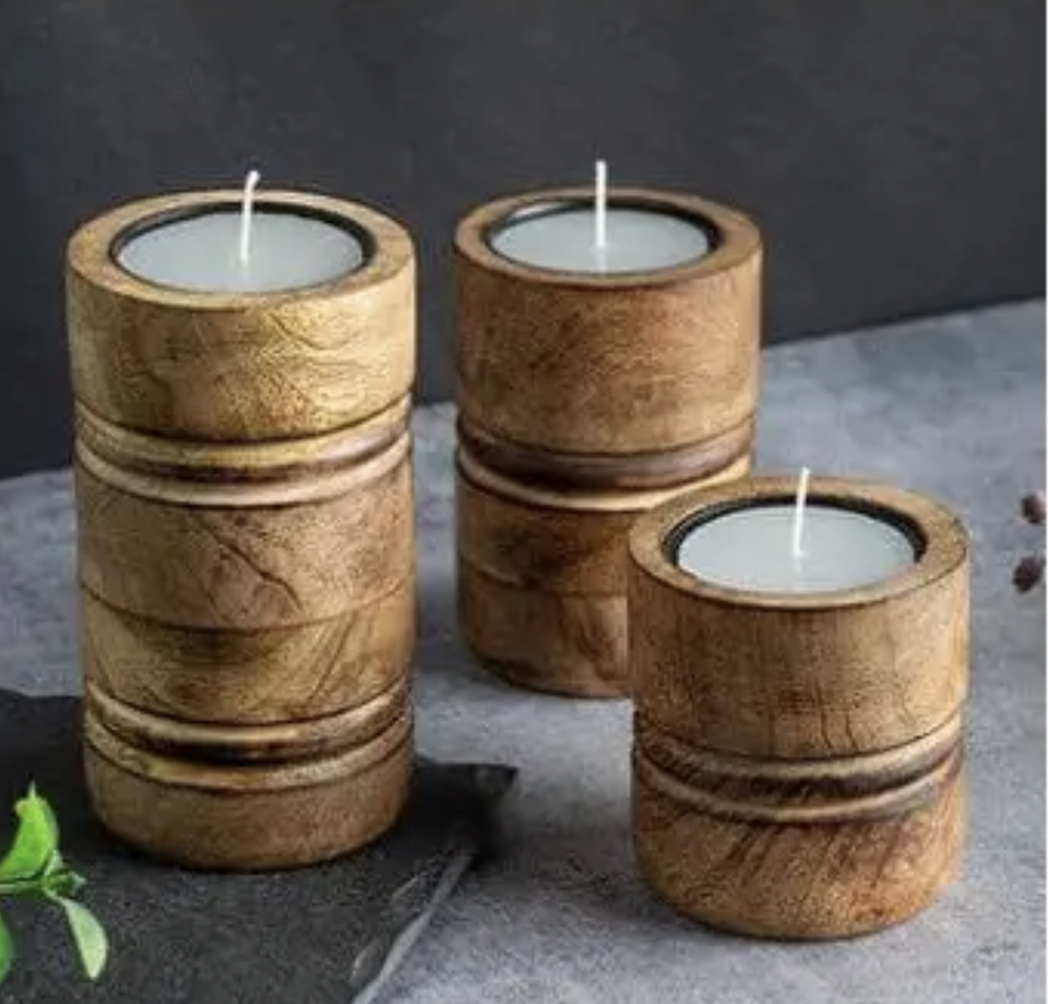 Handmade Wooden Pillar Candle Stand Hand Crafted Wood Candle Holder for Home Decor and Kitchen