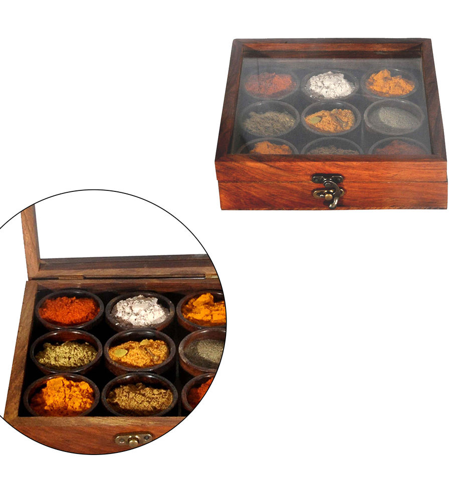 Keyword:Handmade Wooden Spice Box with 9 Circular Container