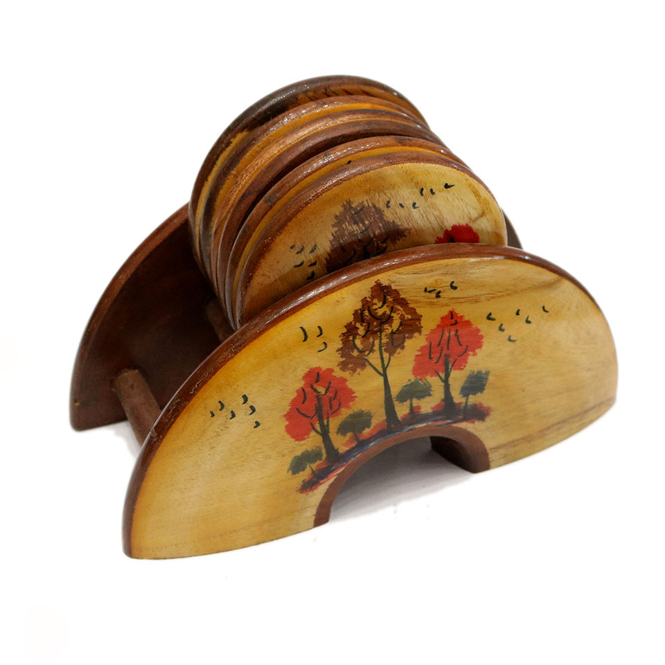 Handmade Wooden Tea Coasters , Handmade Wooden Tea Coaster Set for Kitchen/Dining, Custom Shape Brown Coasters
