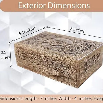 Handmade Wooden Triple Moon Jewelry Trinket Keepsake Box Unique Design with Engraved Carving Handmade Wooden Storage Case