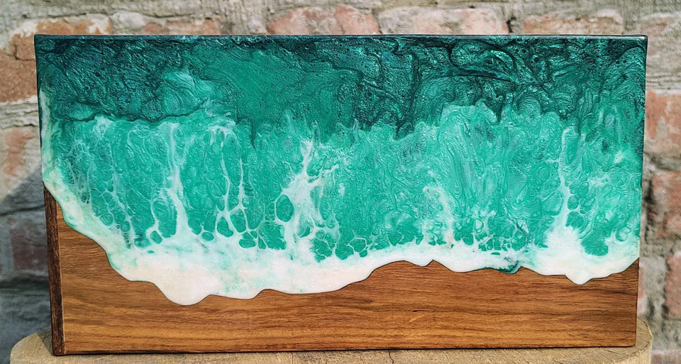 Handmade Wooden Urn Box Custom Engraved Rosewood & Green Resin Memorial Keepsake Box Decorative Cremation Urn for Ashes