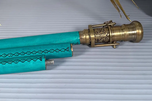 Handmade Wooden Walking Stick Green Leather Cane with Antique Hidden Spyglass, Foldable Vintage And Compass On Top
