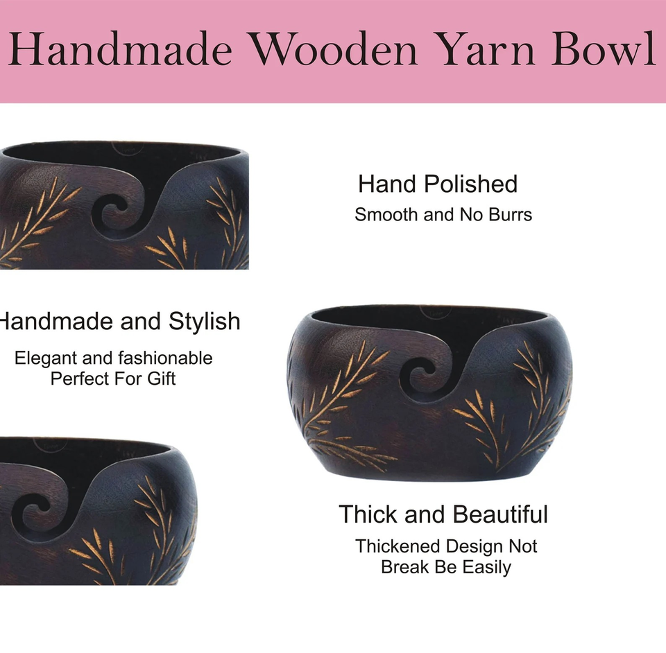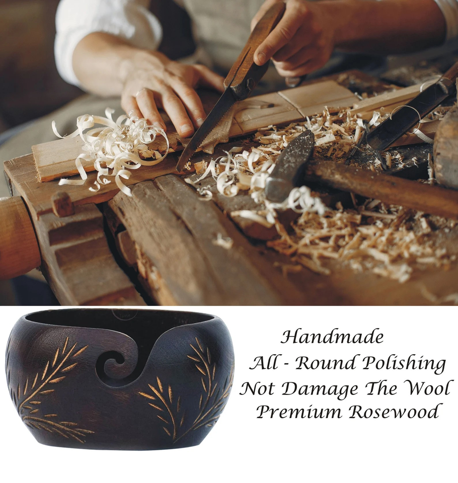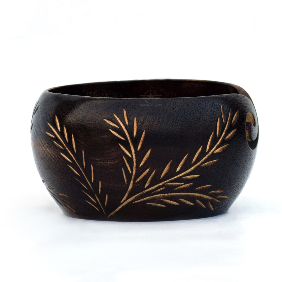 Handmade Wooden Yarn Bowl Knitting & Crochet Organizer with Carved Leaf Yarn Bowl Functional Christmas gift