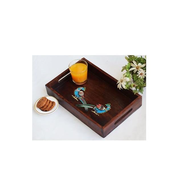 Handmade Wooden printed Tray with Floral Design Sustainable and Decorative Serving Trays from India for Food Drinks use