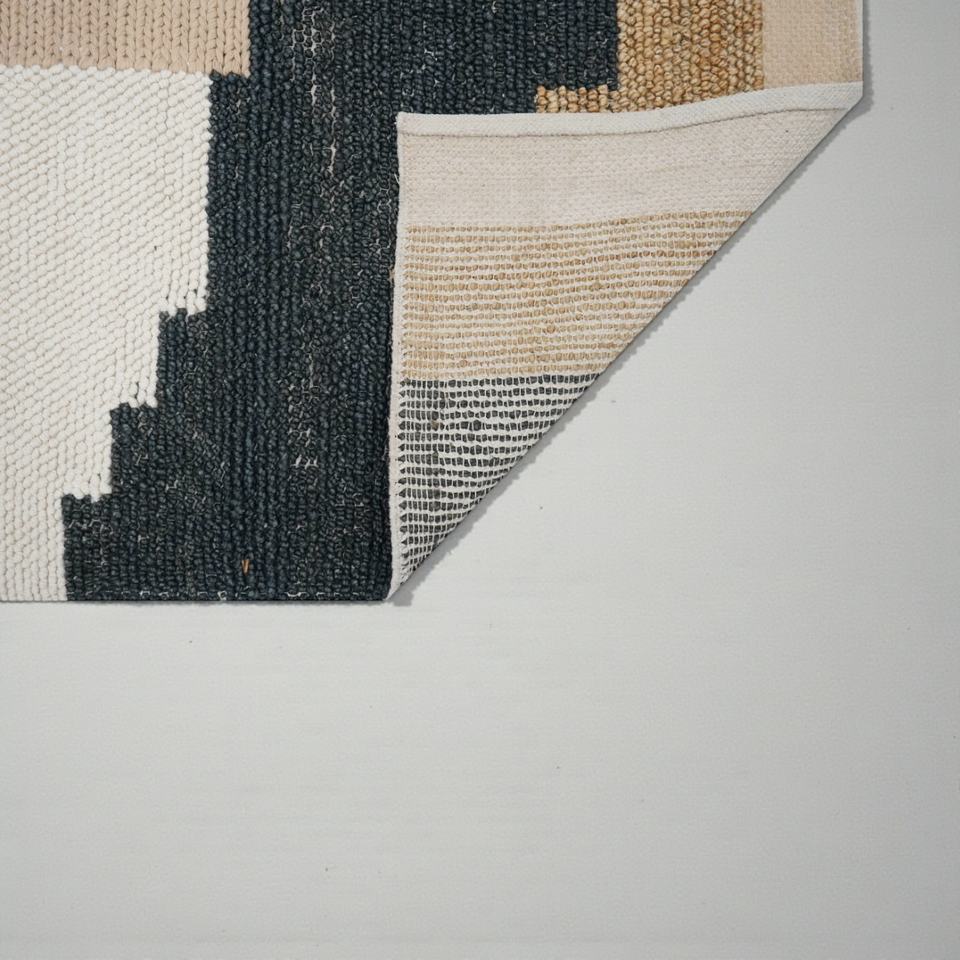 Handmade Wool Durrie Rug Modern Abstract Flat Weave Area Rug with Geometric Pattern Eco-Friendly PET Friendly Beige Black