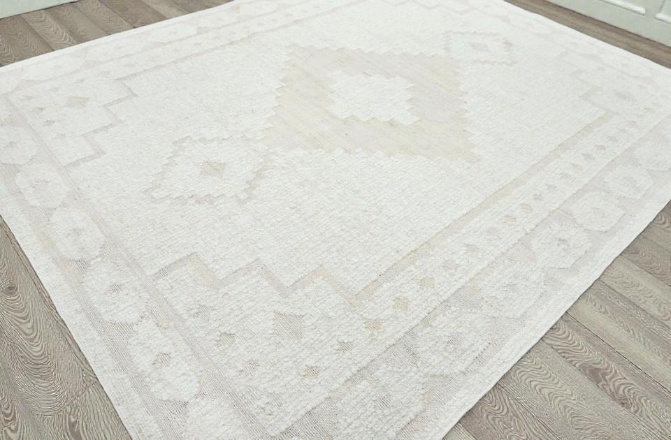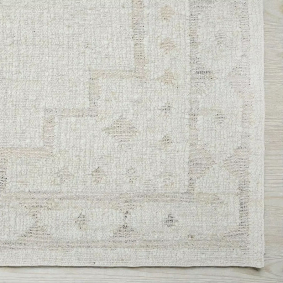 Handmade Wool Jute Abstract Rug Handwoven Eco-Friendly Pet-Friendly Area Rug in Ivory Beige for Living Room & Bedroom