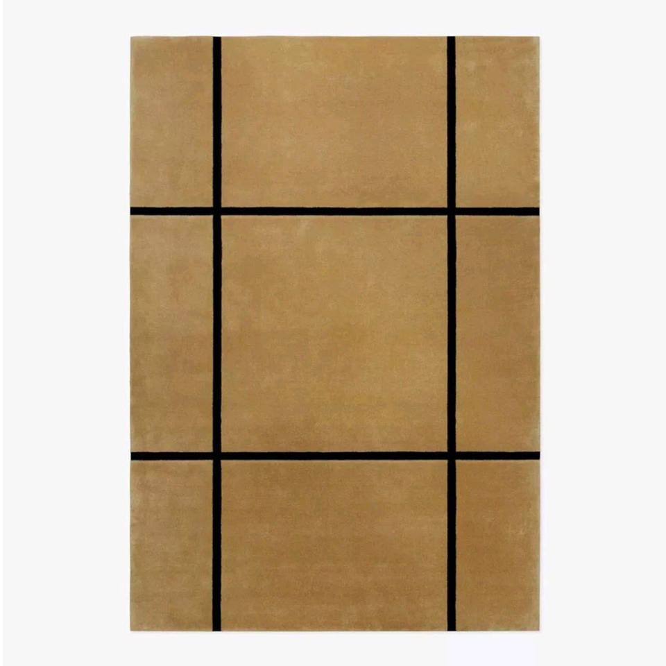 Handmade Wool Rug Luxury Bauhaus Grid Rug | Minimalist Black Frame Design Rug | Luxury Commercial Grade Office Area Carpet
