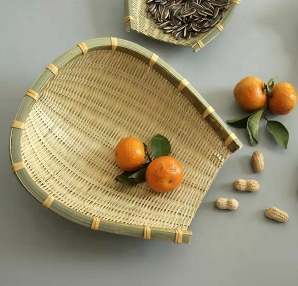 Handmade Woven Bamboo Dustpan Vintage Style Bamboo Basket for Kitchen