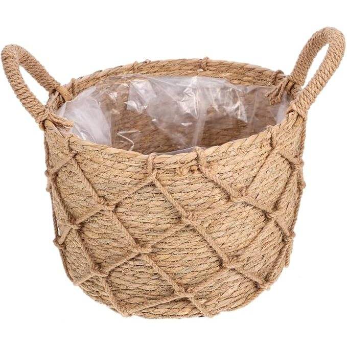 Handmade Woven Leather Flower Basket with Handle Multi-Purpose Storage for Kitchen or Event Rustic Home Decor