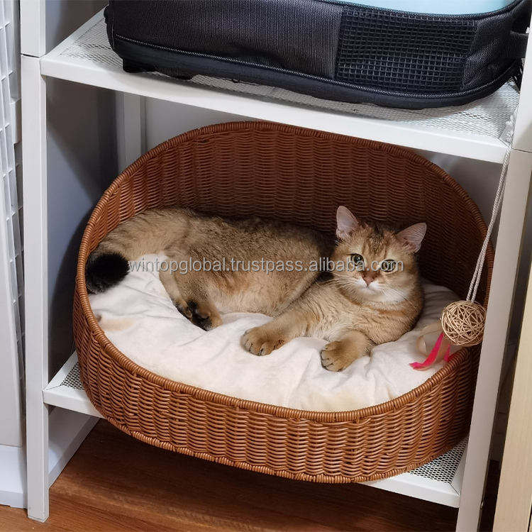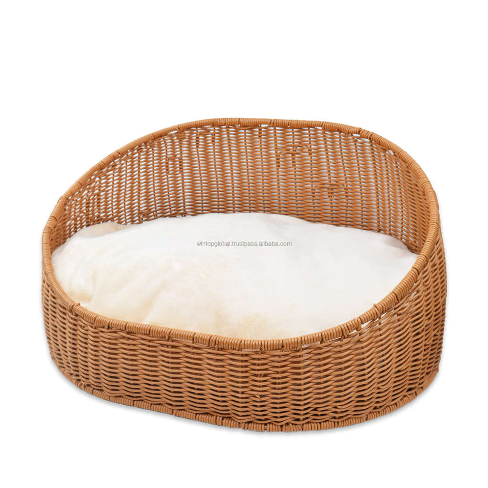 Handmade Traditional Chinese Handicraft Woven Linen Rattan Waterproof Breathable Eco Friendly Durable Semi Enclosed Pet Bed