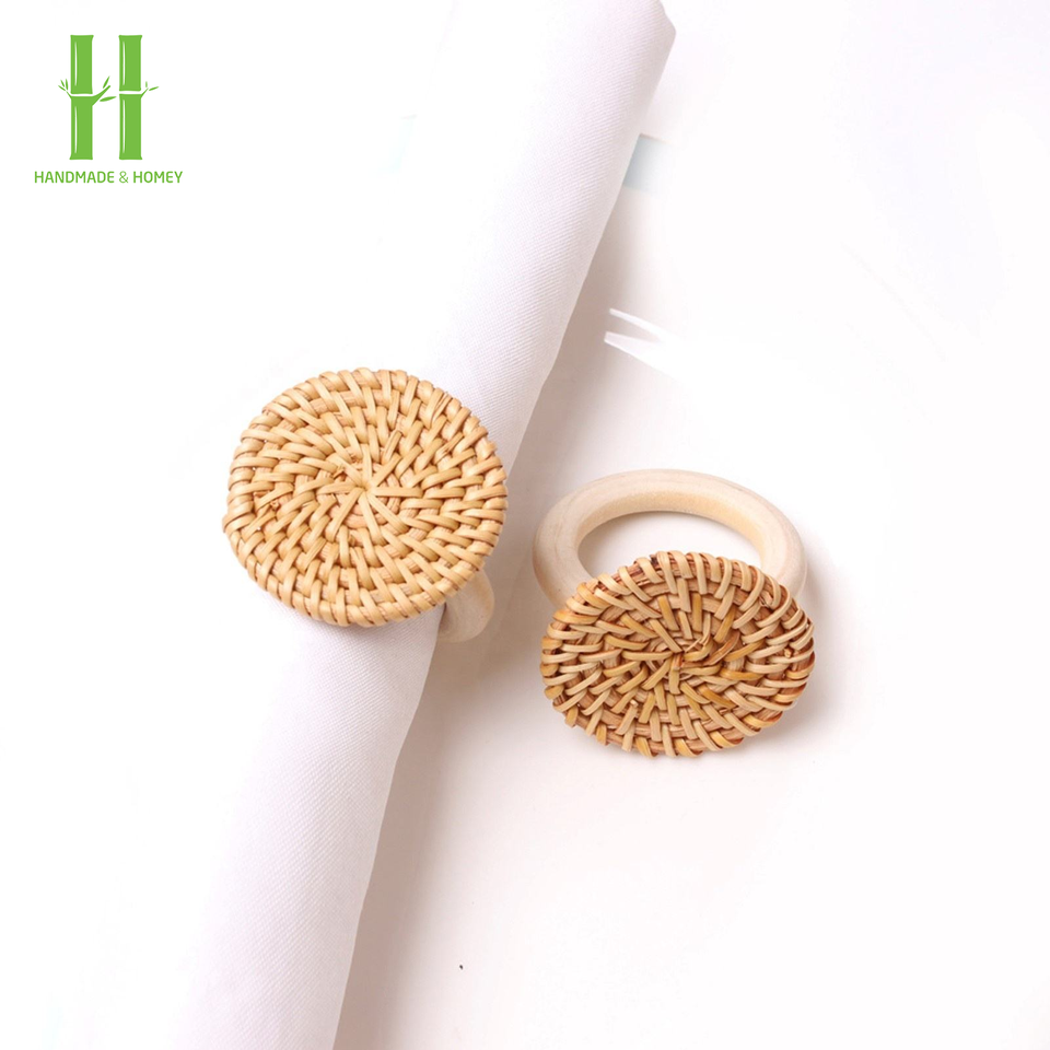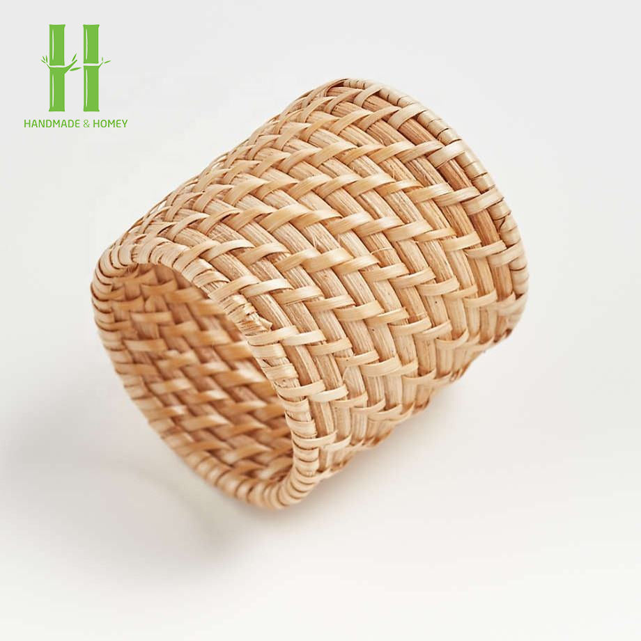 Handmade Woven Bamboo Napkin Ring Rustic Natural Napkin Holder Bohemian Style Eco-Friendly Durable Restaurant Home Party Table