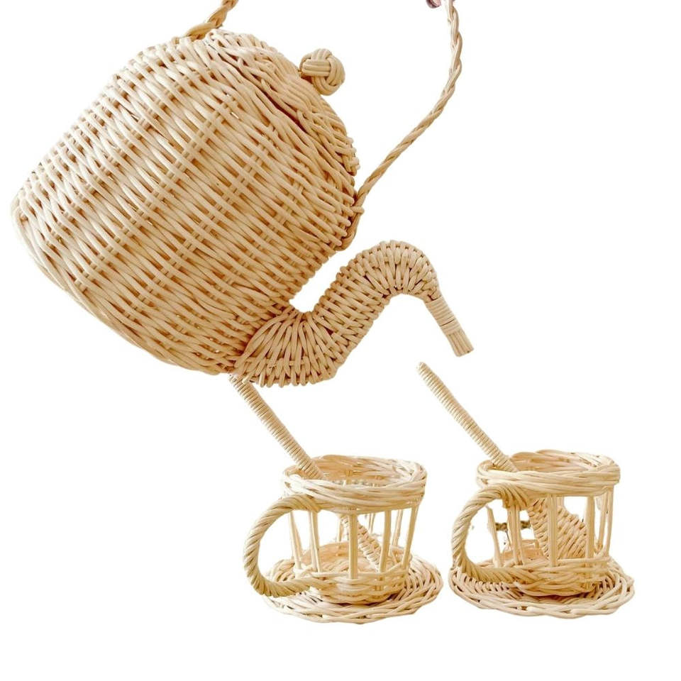 Handmade Woven Rattan Tea Set Age-Suitable Kitchen Furniture Toys for Kids Aged 5-7 Direct Wholesale From Vietnam Manufacturer