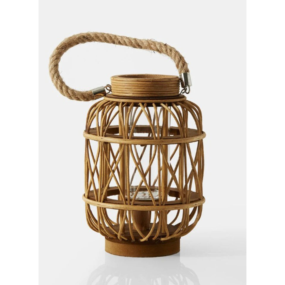 Handmade Woven Rattan Wooden Candle Holder With Rope Handle Indoor Outdoor Hurricane Lantern For Home Decor And Events