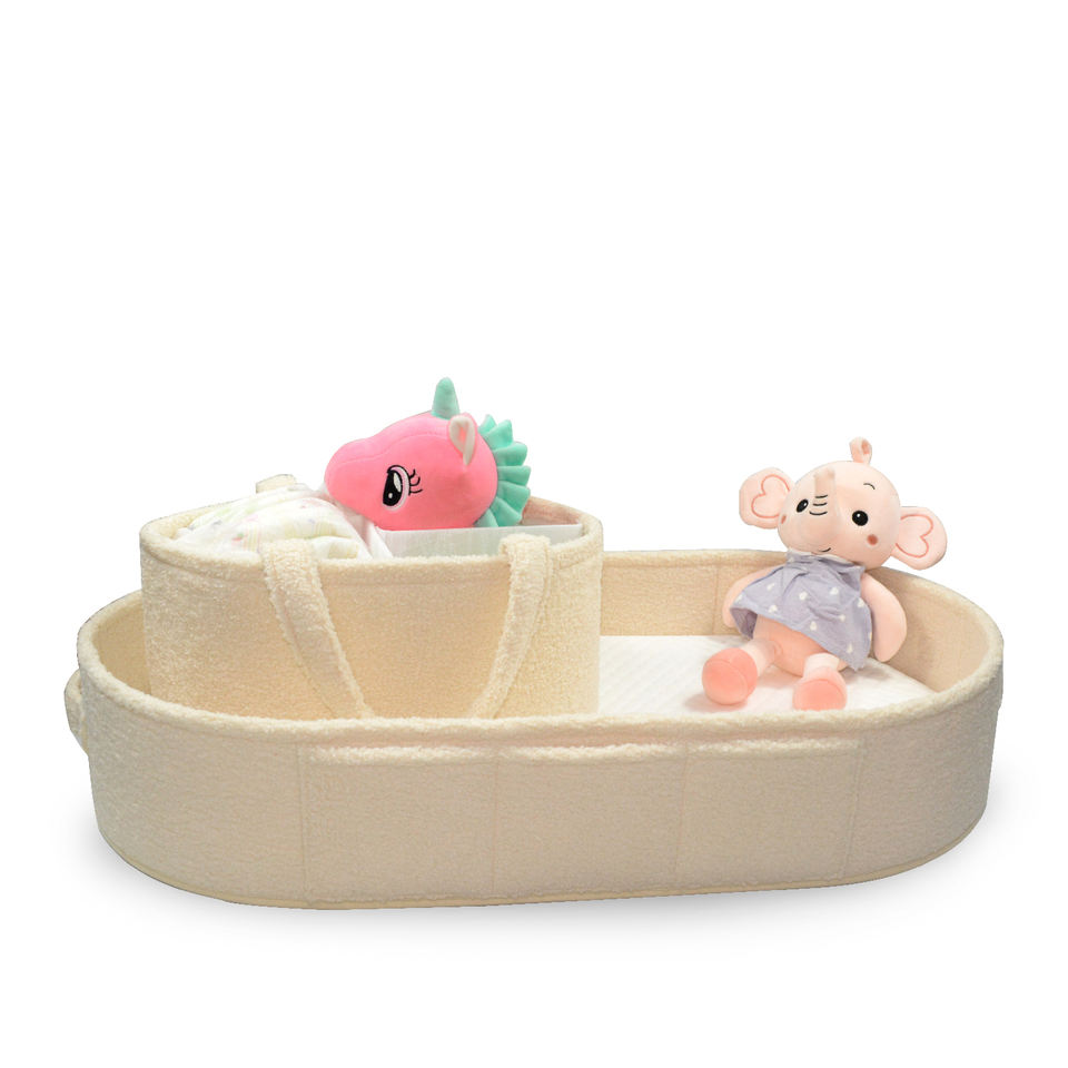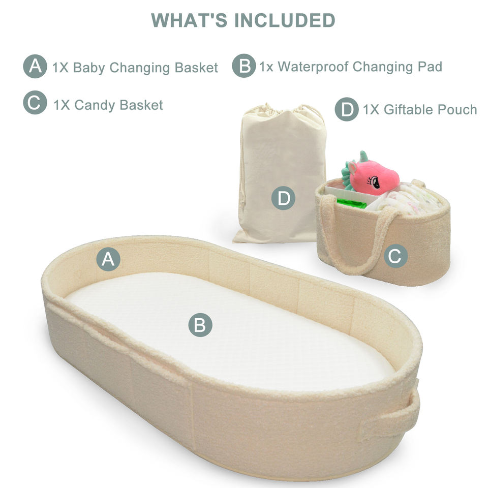 Handmade Woven Teddy Moses Baby Changing Basket with Mattress Pad Diaper Caddy Organizer Removable Cover